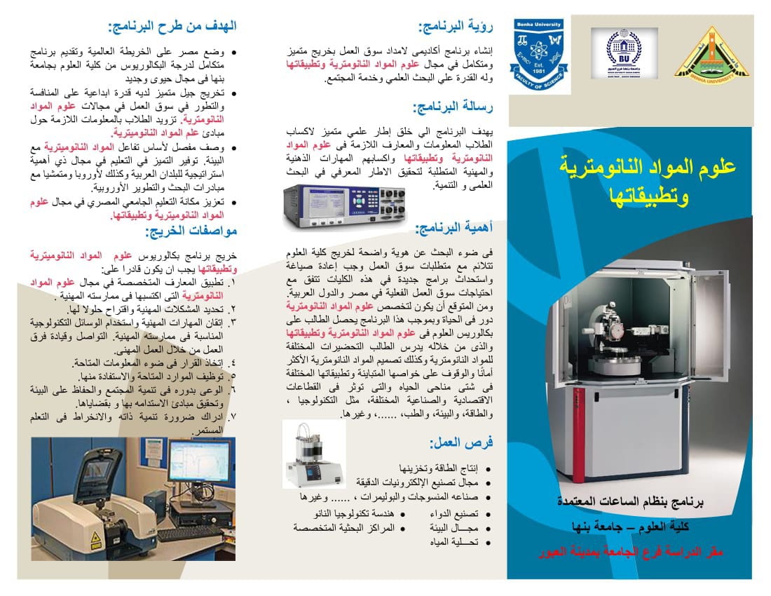 علوم المواد النانومترية و تطبيقاتها بمقر الجامعة بالعبور